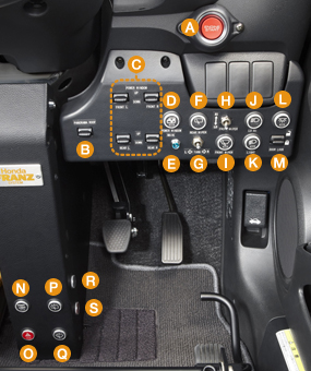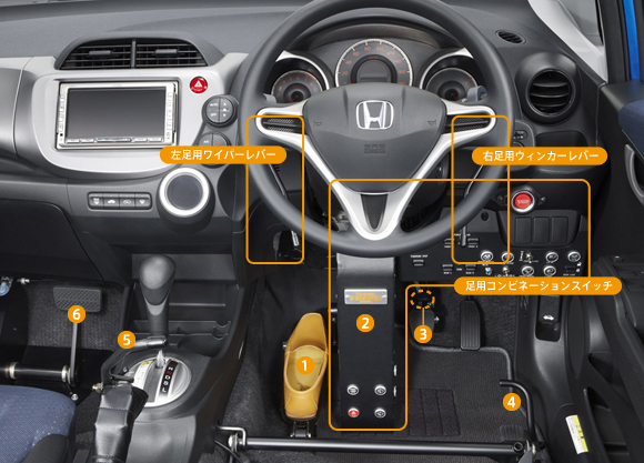 パワーウインドウやウインカー、ライトなど運転時に使うスイッチ類は右足元に集中して配置。スイッチのレイアウトは、お客様のお身体の状態に合わせて、さまざまな配置が可能です。