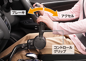 ノブは回転するので、握り変えずにハンドル操作が可能です。 |