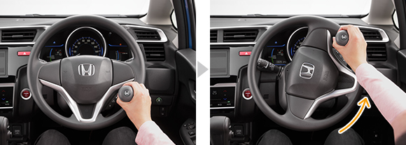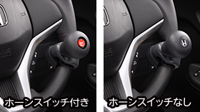 ホーンスイッチ付きタイプは、ノブから手を放さずにホーン操作ができます。 |