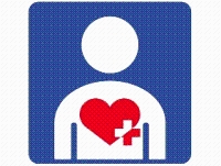 | ③内部障害 内部障害とは、心臓機能障害、じん臓機能障害、呼吸器機能障害、ぼうこう又は直腸の機能障害、小腸機能障害、肝臓機能障害、免疫機能障害をいう.。外見からは判断できないため、周囲に理解してもらいにくい障害である。そのため、日常生活において障害者用の駐車スペースに車を停めていると警備員に注意されたり、電車内で優先席に座ると冷ややかな目で見られるたり、職場などで、頻繁にトイレに行っていると「さぼっているのではないか」と言われると不便なことが多い。コミュニケーションや介助の仕方はその人に応じて異なるが特に次の点に配慮が必要である。心臓機能障害のある方の場合、イスに座ってもらって話すようにする。階段を避け重い荷物は持ってあげる。ペースメーカー等の使用者の場合、携帯電話の電波の影響への考慮も必要である。呼吸器能障害のある方の場合、近くではタバコは吸わないようにする。イスを勧め、楽な姿勢でゆっくりと話をしてもらい、長時間にならないよう注意する。肝機能に障害のある方の場合、過食は意識障害の誘因となり食塩はむくみを悪化させる。アルコールや症状を増悪させる食べ物を無理に勧めてはいけない。感染しやすいため、あなたが風邪をひいているときなどはできるだけ接触は避けるようにする。膀胱・直腸機能に障害がある方の場合、プライバシーには十分配慮して、原因疾患など不要なことは聞かないようにする。トイレはバリアフリーのトイレに案内する。オストメイトの方は、困っていることは次の点である。①汚れたバウチや衣類、身体を洗う設備がない②腹部を洗いたいが石鹸や温水がない③着替えのバウチを置く場所がない④正しく装着できたかを確認する鏡がない⑤車いすトイレに入りずらいなどある。一緒に外出する場合などは、事前の調査・確認を行う。ヒト免疫不全ウイルス(HIV)による免疫機能障害の方の場合、プライバシーに十分配慮し個別的な対応をこころがける。HIV感染者、エイズ患者が出血した場合は、手袋をするなど直接血液に触れないないようにする。 | ![]() オストメイトマーク |
