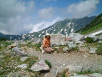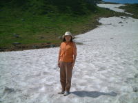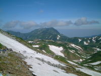 一の越へと歩き始めました・・・途中、残雪があります! 残雪がいたるところに・・