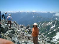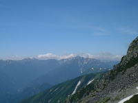 ここが一の越。遠くにみくりガ池が見えます。この山の中に槍ガ岳が見えるのですが・・・