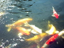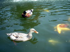 こ旅館の池には鯉、そして鴨が泳いでいました。