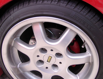 パッドはブレーキダストが少なく、純正よりも性能をアップさせた「Green Stuff」