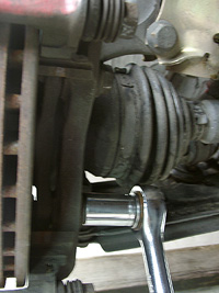 ↑レンチでキャリパー下側のボルトを外します。 ↑これでパッドが外せます。