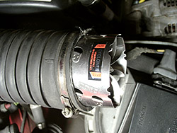 インテークマニホールド側のエアクリーナーのホースを外します。