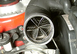 エアクリーナーのホースの中に風車のような形のこの商品を入れるだけで