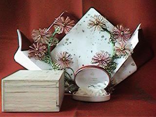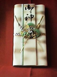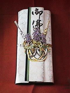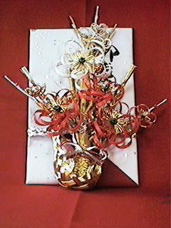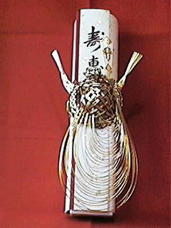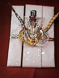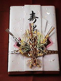 良いほど持参されます。返しはその金額の 1割程度を返します。その他に留袖などの 御着物を頂かれた方は、それを含めた金額 の1割程、時計、スーツ(お仕立て券)等 で返します。中には寿として金一封として 返される方もおられます。 |