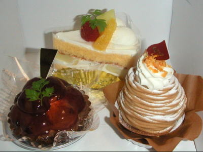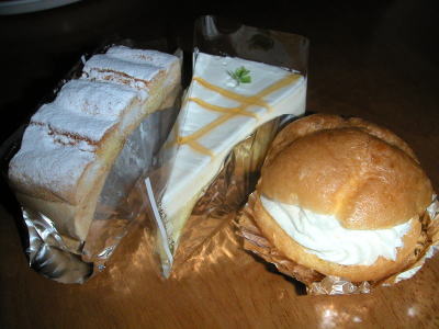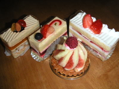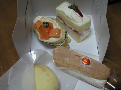 ショートケーキなど4つを購入、通常はどれも300円台後半の値段だが、フェア(?)のため4つで1,000円なのでお得。ショートケーキはスポンジがふわふわ。意外な発見だったのが、いちじくのタルトがかなりおいしかったことかな。(2004/08)