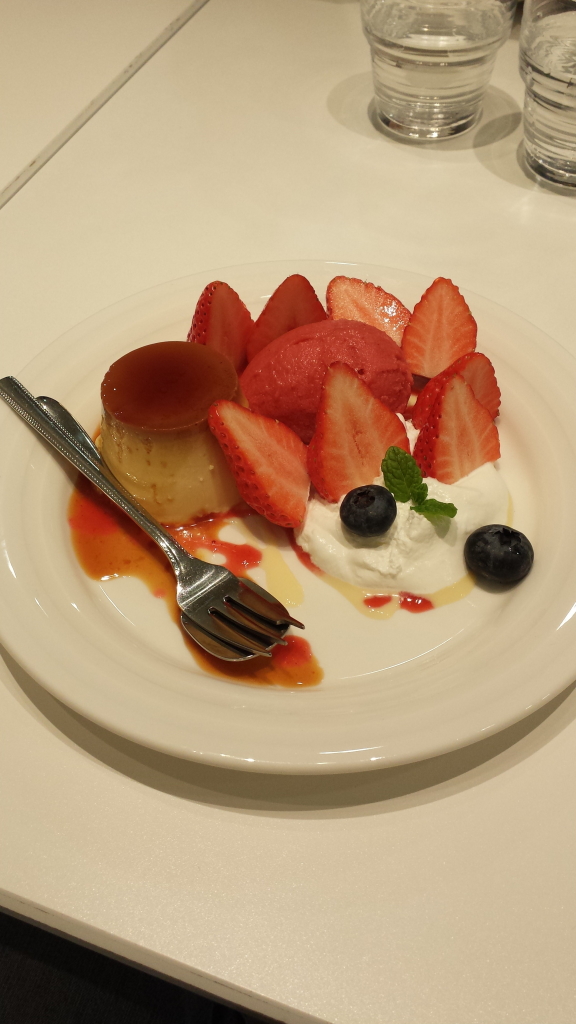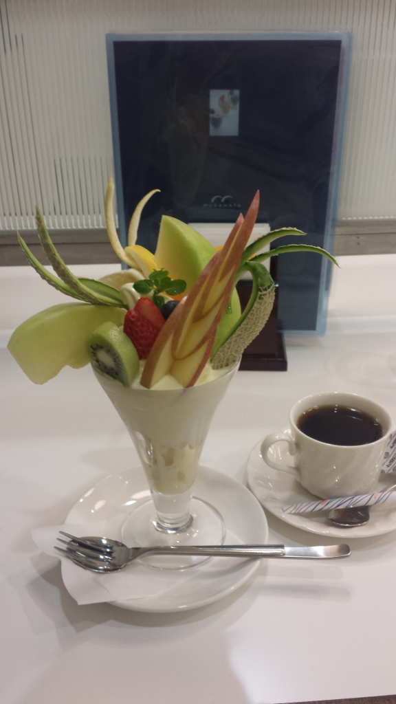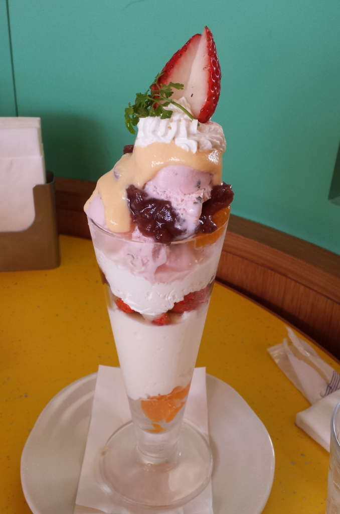 相方は、ソフトクリームあんみつ550円、これぞ東京のあんみつ!って感じ、フルーツたっぷり、かんてんと豆も入って、あんことソフトをからめて食べるとうまいんだなこれが。