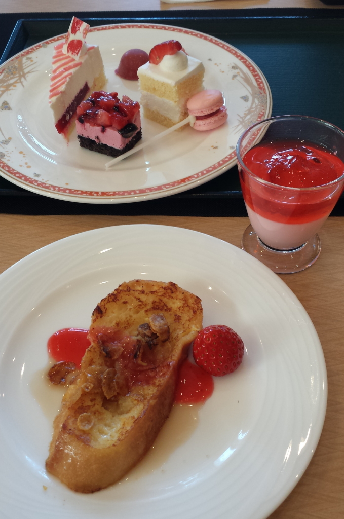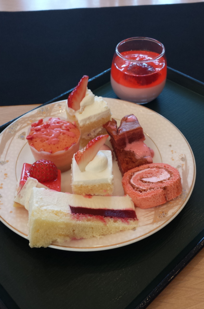 買ってきてもらったケーキをいただきました。チーズケーキなど、どれもおいしかったよ。