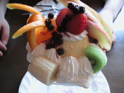 生クリームはキメが細かくまろやかで、しつこくないのでたっぷり食べてもイヤにならない。最後までおいしくいただけました。(2005/05)
