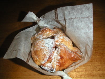 以前はかなり行列ができていたが、最近は落ち着いてきたので行ってきました、店舗前には屋根付きの休憩所がある。メニューから、あん,カスタード,クリーミーチーズ,ハムを注文、5分ほど待ってお持ち帰り。あんやカスタードは、甘さ控えめで食べやすい。クリーミーチーズはまったりと、ハムはマヨネーズが入ってこれもなかなかイケる。やばい、結構ペロッと食べちゃった。(初・2003/11)