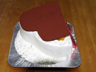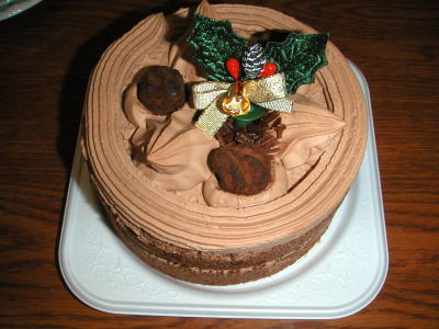クリスマスはあまり関係のない私だが、ちょっと雰囲気だけでも味わおうと、クリスマスケーキ(チョコ)をローソンで見つけ購入、1,050円だったし。ケーキ専門店で買うのに比べたら、スポンジのきめが粗くて、しっとりしてないけど安いからいいや。(2004/12)