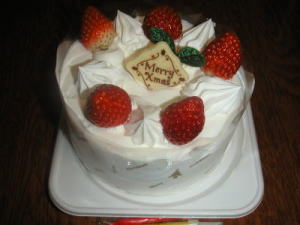 クリスマスケーキを12月25日に半額セールの700円で購入、この値段なら買ってもいいが、本当は1,400円なんだね。(2003/12)