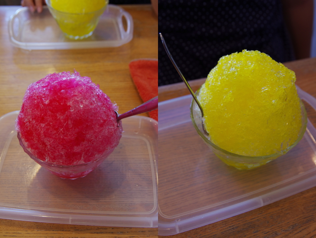 宇治ミルク、宇治金時(中にあずきが入ってます)、イチゴ、レモン。