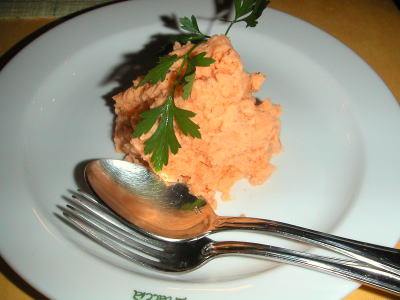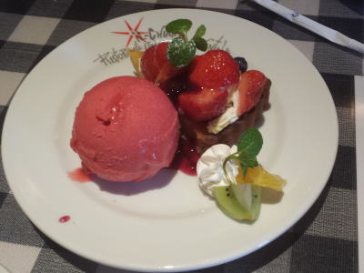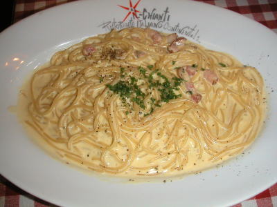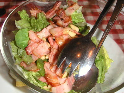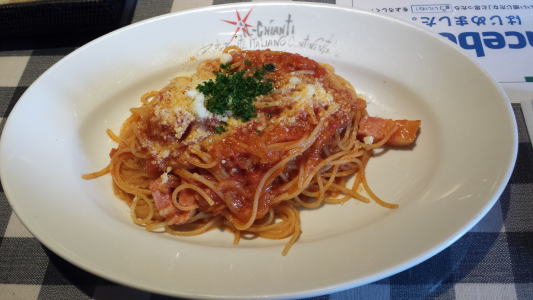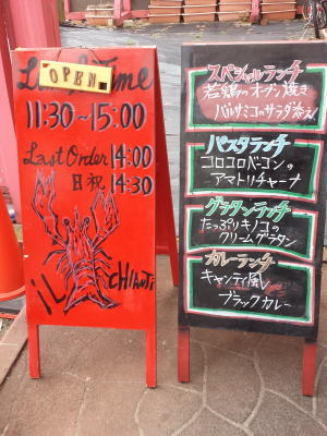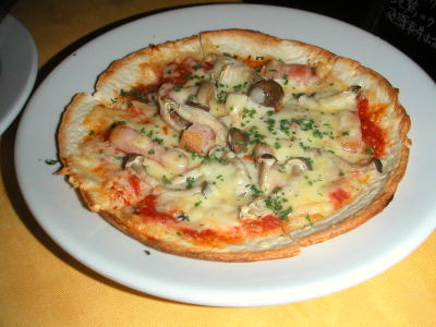 パスタを食べようと、初入店。ちょっとこってりしたのが食べたくて、カルボナーラM1,350円、ガーリックたっぷり、とってもクリーミーでおいしいが、最後の方はコテコテになってきた。ベーコンと松の実のサラダ880円、あったかカリカリベーコンと松の実に特製のドレッシングをかけて、おいしいよ。オニオンスープグラタン630円、こちらはアツアツ、上のフランスパンが麩のような食感。最後にイタリアン・ピラフM1,240円は、シーフードたっぷりのトマトソースがさっぱりと、タコがコリコリしておいしいよ。う〜、食べすぎだぁ〜。料理はどれもおいしく本格的で、店内の雰囲気もよく、なかなかいいお店でした。お客さんもたくさん来ていた。メニューもたくさんあり、迷ってしまう。今度は夜に来て、前菜や肉料理なども食べちゃおうっと。(初・2004/07)