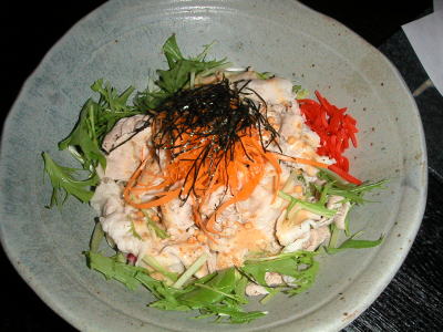 久しぶりに入店。若どり,ねぎまなど基本メニューをはじめ、しろ(私の好物のとりモツ)などを注文。キャベツサラダは、冷やしたキャベツに塩かソースかマヨネーズがかかっているだけなのだが、結構おいしいので2つも食べちゃった。串カツはケチャップソースをつけて、玉ネギ揚げ,レンコン揚げなど、揚げ物もおいしい。しんぞうは、焼肉のタンような食感。レバーも食べたかったが今日は無いそうで、あるお客さんは入店直後レバーが無いことを知り、帰ってしまいました。満足、年に1度は行きたくなるよね。(2003/04)