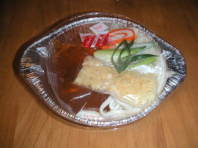 久しぶりに行ってきました金沢へ、大和での買い物帰りに近江町市場へ、かなり人がいっぱい。店先でうどんを販売していて、その奥に食堂がある、本当は海鮮丼などを食べたかったが体調が悪くうどんにしました。店内は満員で特に女性客が多い、おばさんが手打ちでうどんを作ってる。いなりうどん400円、しこしことコシのあるうどんに関西風のダシが、とってもウマイ!。ラーメン320円、和風だしに細めの麺、メンマ,チャーシュー,わかめが載って、これもかなりウマイ!。今度はカレーラーメン(ラーメンの麺に、スープ無しで、カレー汁がかかってる)も食べてみたいな。丼物やセット物を食べている人も多い。帰りに、店先でアルミ箔鍋入りで具とダシ付きの鍋焼きうどん、なんと100円をお持ち帰り(カップめんより安い?)、明日でも食べようっと。ここは安くてウマかった、また来ようっと!。ちなみに、近江町市場のズワイガニは新湊からも来ているらしい。ちなみに市場内の海鮮丼などのお魚系の食事処は、おいしいところが多いが、富山県民の舌ではちょっと物足りないお店もあるので、あまり期待しすぎないようにしよう。(初・2004/02)