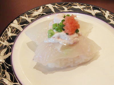 新湊からやってきた回転寿し、オープンして間もないので店内はとってもキレイ。空いている時間にいったら、何も回っていなく「お好みのものを注文してください」とのこと。イカ(アオリイカ、まったりとしておいしい),サバ,サヨリ(さっぱりとおいしい),アジ,カニ(身がたっぷり),メジマグロ(新湊の名産らしい、あっさりして、サスに似た味わい),ブリ(地物だって、とってもおいしい),甘エビ,鉄火巻き...。どれもシャリは小ぶりで上品、ネタも上等でおいしい。本店が新湊の老舗の寿司屋なため、回転寿しだからといって手を抜いていない姿勢に好感が持てるねぇ。