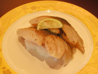 今日は店長は不在、めがねのおじちゃんが一生懸命ブリカマを焼いていた、480円のお皿だったので迷った末ゲット、レモンをしぼって食べるとこれが超&激ウマ、しっかり塩が付けてあり、ブリの脂がのってトロトロ。アジはネタ切れ、サバ,甘エビ,サス,サヨリなどを食べる、う〜んおいしかった。(2004/11)
