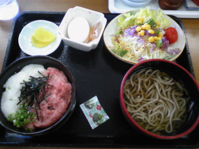 また、行ってきました。牛モツ煮込みうどん800円、モツがたっぷり、きつね(お揚げ)と卵,カマボコ,えのき入り。ミニ天ざるそば780円、えび,ナス,さつまいも,海苔の天ぷらつき、ミニといってもそんなに少なくはなかった。メニューに、ハンバーグやエビフライとのセットもある。駐車場は、店舗前と道路挟んで斜め向いにもある。(2002/12)