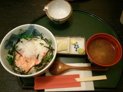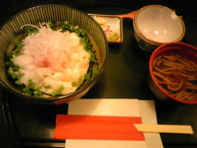 きつね親子重850円、親子丼ときつねうどんのセット、細めだが手打ちのうどんに細切れお揚げ、細かく食べやすい鶏肉であっさりとした親子丼、おいしいよ。冷やしきのこうどん650円、濃い口ダシにコシのあるうどんときのこがおいしい。(2003/09)