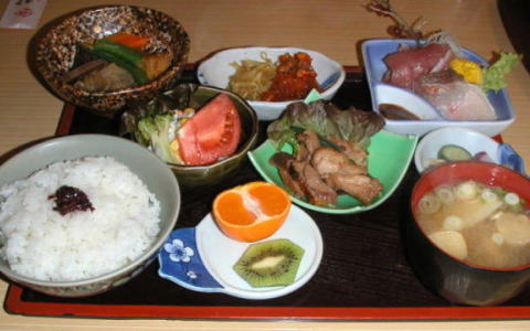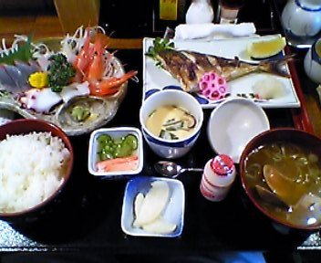 お造りは厚めに切ったブリや甘エビなどたっぷり入っている。アジの塩焼きは大きめで肉厚で身がプリプリ。カニの酢の物や茶碗蒸しも付いている。お味噌汁は大きいハマグリがいくつも入っている。ヤクルトが付いているのがご愛嬌か(デザート代わりかしら)。おかずはどりもすごくおいしい、お腹もいっぱいになり満足でした。