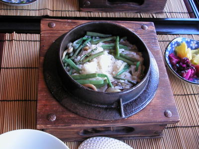ひさしぶりに入店、18:30過ぎだったのに店内は満員、待ちができている。土鍋うどんとぞうすいの名店だが、今日はカツ丼(750円)とかけそば(500円)を注文。ここのカツ丼はちょっと変わっていて、ごはんにダシと固めの溶き卵がかかり、その上に小ぶりだが揚げたてサクサクのカツが2枚のり、軽くソースがかかっている(いわゆるソースカツ丼)、これがなかなかおいしいのだ。相方はざるそば(650円)を注文、さらしなそばで大盛り(2枚)も軽く食べられそうな感じ。店員のおばさん達はきびきびと動いているので、客の回転は比較的早い。ほとんどの人が土鍋うどんやぞうすいを食べていたが、カツ丼やざるそばも人気だった。(2003/05)