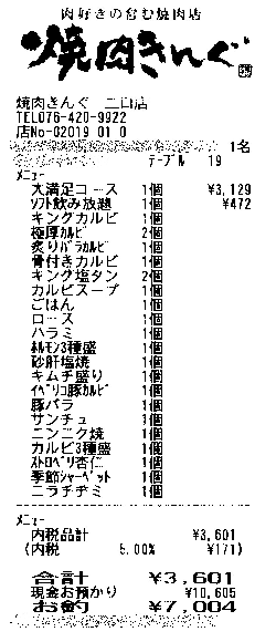 めいっぱい食べた日のレシートはこちら。 (2011/02)