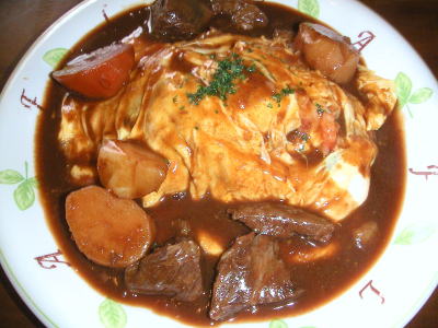 ビーフシチューのオムライス1,160円、ふわふわのオムライスに、とろとろビーフのシチューがかかって、なかなかおいしい。量は普通かな。