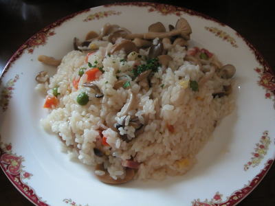 和風きのこピラフ840円、ちょっと時間がかかってるなぁ〜と思ってたらアツアツで出てきた。もしかして本格的に炊いて作ったような感じで、少しほぐして水分を飛ばしてから食べると結構うまい。でもちょっと量は多いかも。(初・2004/08)