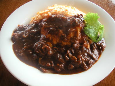 ハヤシオムライス(少なめ)600円と、カレーオムライス(少なめ)600円、どちらもケチャップライスがしっかりと味がついて、ハヤシソースはまったりと、カレーはコクと辛さが、おいしい。昔は量が多かったが、いまは少なめ(普通の7割の量)メニューができて、お腹にちょうどよい。席は仕切りがあり個室風で雰囲気もいいよ。(2004/07)
