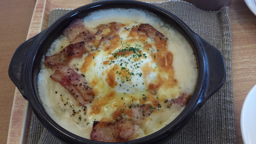 生ハムとアスパラのドリア(S)、温たまベーコンのドリア(M)、エビドリア(S)、ミートパスタ(M)、コクのあるホワイトソースがおいしかったです。