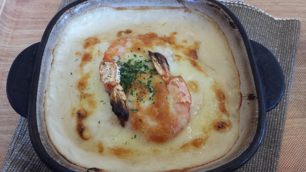 相方はレディースセット980円、パン,グラタン,エビフライ,ヒレカツ,ドリンクがついて、こちらもおいしい。