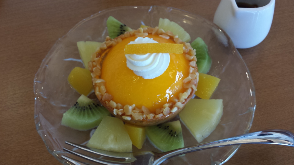 デザートのレモンケーキの紅茶シロップがけ、パンケーキもいただきました。
