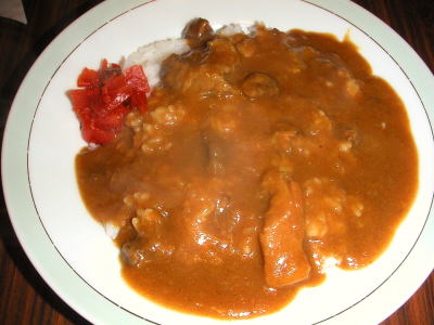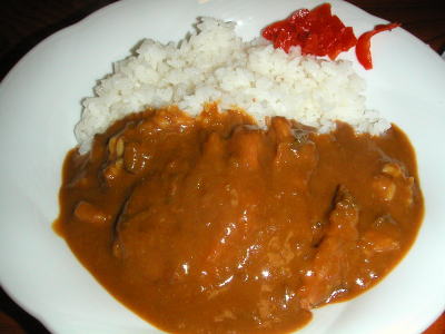 相方はカレーライス530円、これはリーズナブルでしかもおいしい。カレーはちょっと甘めかなと思うが後から少し辛さが来る、いかにも洋食屋さんのカレーって感じでよかった。ごはんもおいしくて満足、帰る頃には店内は満員でした。(2005/05)