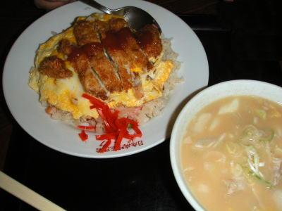 久しぶりに入店。ポーク風ライスとん汁付き650円。カツカレー500円は、カツの上にマイルドで少し辛いカレーがかかっておいしい。どちらもトンカツは薄めで脂っぽくなく食べやすい。マスターのおじさんは出前に忙しそうでした。(2004/06)
