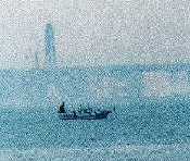 蜃気楼は4〜5月によく発生します。魚津市からよく観測され、発生すると蜃気楼警報が発令され、皆海岸に集まるそうです。富山沖でも、ヨットの上から、時々見ることができます。 空気が海で冷やされたり温められたりすると、レンズ現象になって建物が縦に伸びたり海の上に浮いたりして、とても幻想的です。 (魚津市 朝野様へ 写真提供ありがとうございました。) |