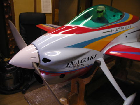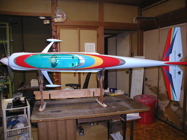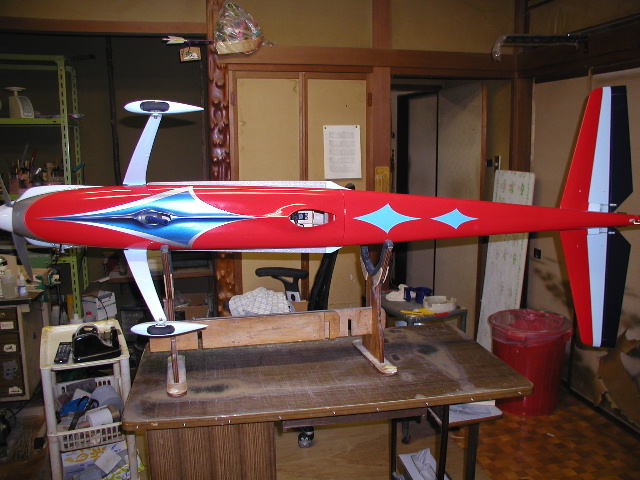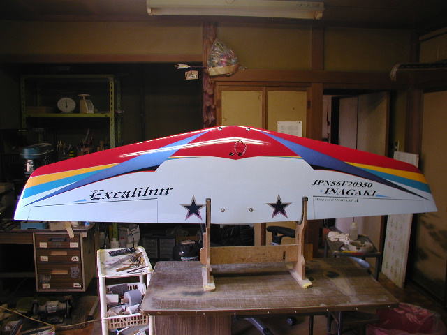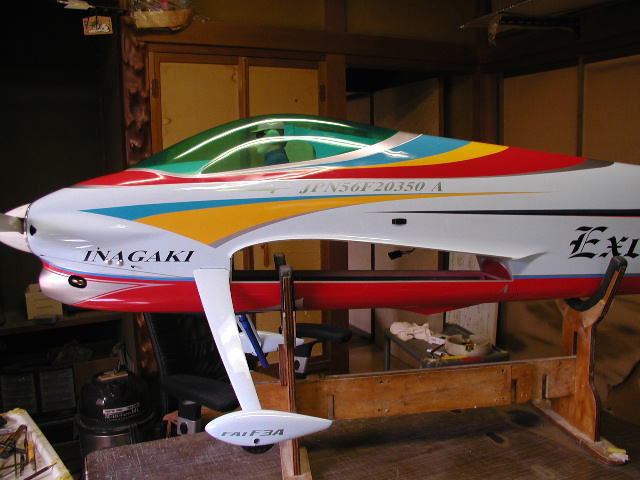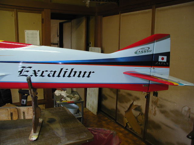 | F3Aスタント機 エクスカリバー エクスカリバーはいかに簡単にPパターンを演技させるか また国産機でありながら価格的にどこまで外国機に対抗出来るかを目標に開発しました。 Pパターンを重視した設計で翼面積を比較的大きく摂り湾曲前縁を採用し 後退角を大きく設定し直進自立安定性を向上させてすわりの良さを実現させました。 また胴体を完全な翼型としナイフエッジの浮きを良くしています。 4ポイントロールなどでも殆どラダを打つ必要がありません。 極力抵抗を減らす工夫を施し翼端形状やキャノピー形状の鋭角的整形などです。 しかし等速飛行に必要な適度な抵抗も考慮し胴幅を広げ前面積を増やしそれにより主翼の振動を フローティング構造と共に大幅に減少させています。 また垂直安定板の幅も広くとり直進性を向上させています。 価格的になんとか外国機に対抗出来ないものかと常々考えていました。 その第一弾がsuper飛燕スケールスタント機シリーズでスケール塗装や構造で大幅に作業時間を 短縮する事に成功していましたのでそれを踏襲させ生地を作ってあります。 塗装でも最近の複雑なデザインを出来る限り見た目を損なわない程度に簡略化して 色の3原色を基本に視認性を最重要視でシャープにスッキリさせ余白の美を求め白を多く残し高級感を 文字の色やデザインで追求し一番時間の掛かるマスキング作業を短縮し価格を抑える事に成功しました。 勿論生地製作や最後の鏡面仕上げなどは一切妥協していません。 マスキング行程と色数を簡略化しただけで本質的に従来の高級完成機となんら変わる所はありません。 一機毎に丹誠込めて私自身が仕上げますので数は出来ませんが品質には自信があります。 是非とも外国機とは一味違う匠の技を御堪能下さい^^ |