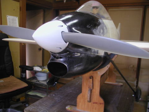 | キャノピーは前縁部を鋭く整形し有害抵抗を減らしています。 | 実機のターボプロップ機の様なエアーインティーク |