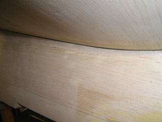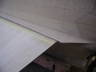 | 主翼とベリーパンを接触させない様に2mm程隙間を空けます | 主翼とフレットの隙間は1.2mm程つけます。 | フレットは20mm厚の一体バルサで整形します。 |