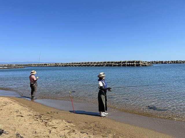 7,8月がハイシーズン。足場の良い砂浜で釣る事ができるので小さいお子さんでも安全に、簡単に釣ることができます。