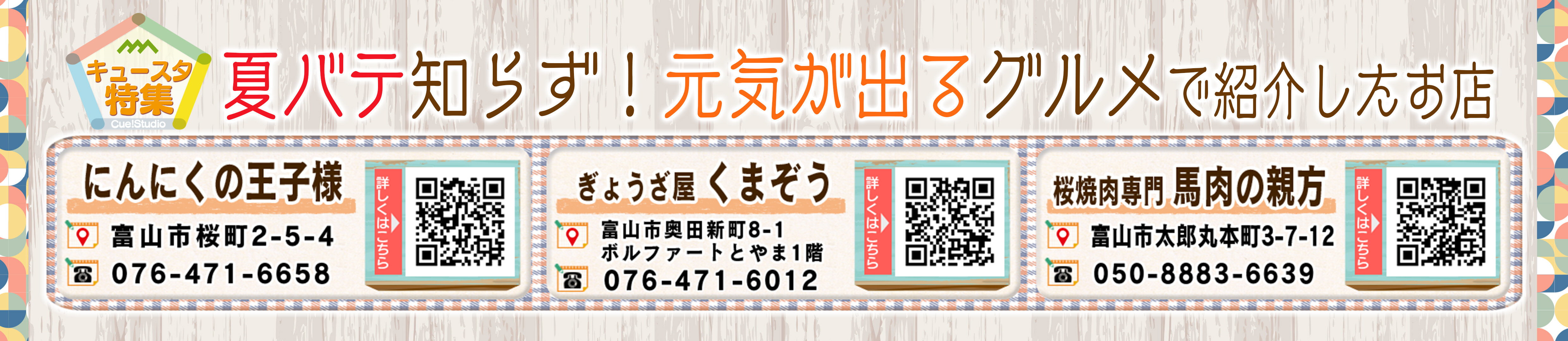 2025.6.28~7.11▶キュー特「夏バテ知らず!元気が出るグルメ」/ machiもり「アメイジングトヤマ写真部」/映えっちゃ「#富山ガラス」