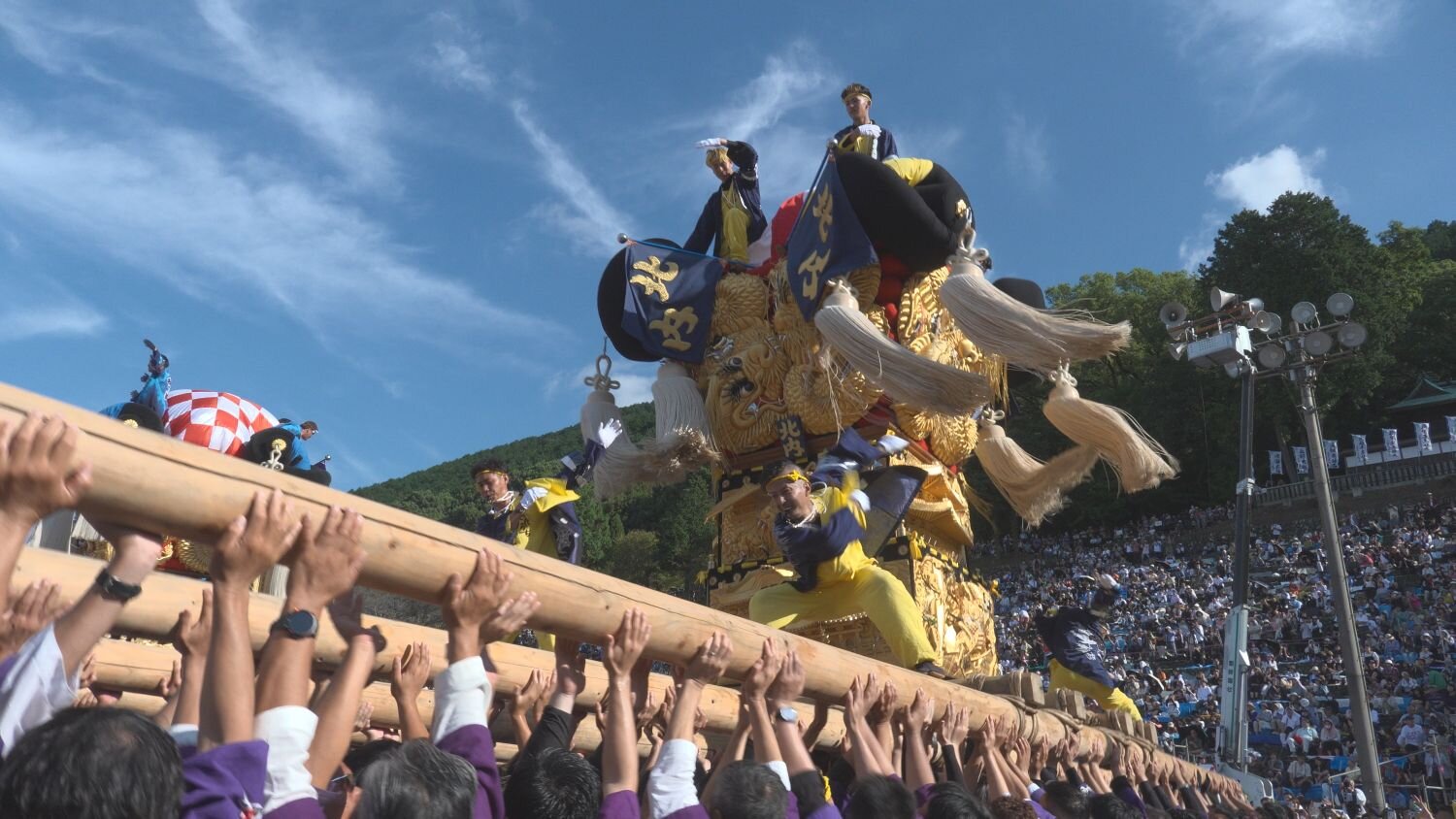 およそ200人のかき夫が2トンにもなる太鼓台を差し上げる様はまさに圧巻。