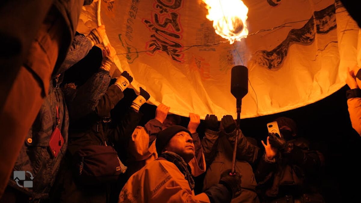 巨大な紙風船に「復興」の祈りを託す地域の人々の想いとともに、雪原から冬の夜空へと次々に舞い上がる幻想的な光景をお届けします。