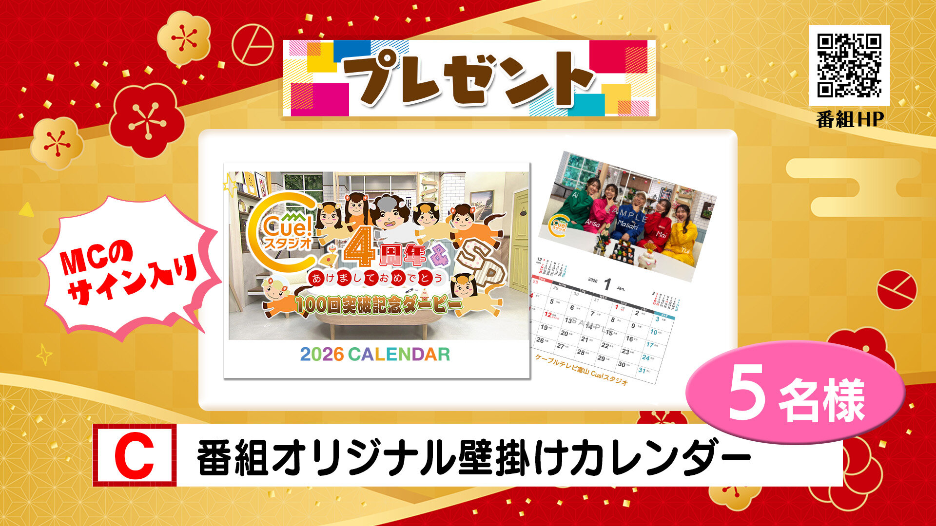 プレゼント C Cue!スタジオ オリジナル壁掛けカレンダー 5名様 |