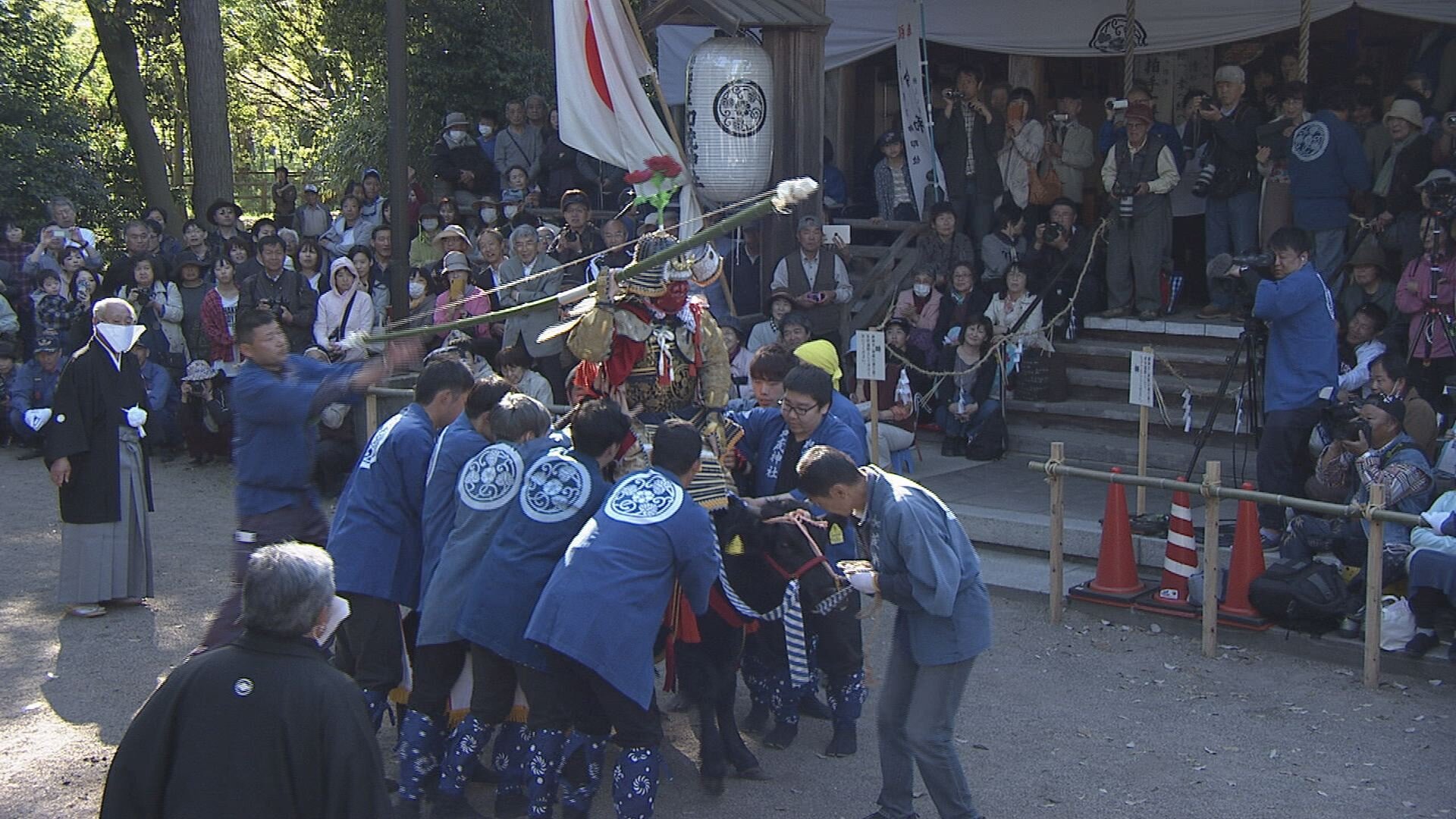 全国的にも珍しい神事が多く、中でも参道を疾走する馬上から的をめがけて矢を放つ「流鏑馬(やぶさめ)式」は大勢の観衆を魅了します。