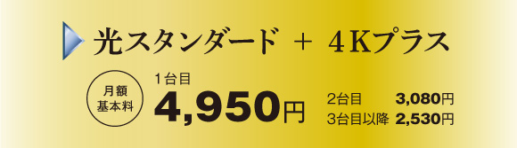 - ※4Kプラスは複数台の設置が可能であり、光テレビの各コース料金が高いコースを1台目コースとします。